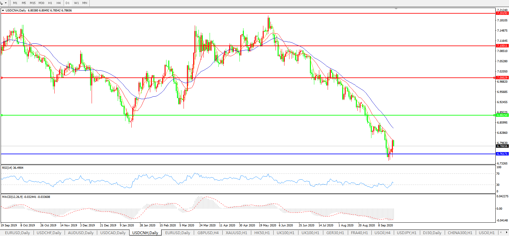 美元兑人民币USDCNH    日线图: