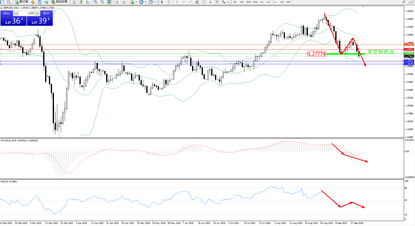 交易策略:1.27774下方看跌,目标1.26522、1.26038