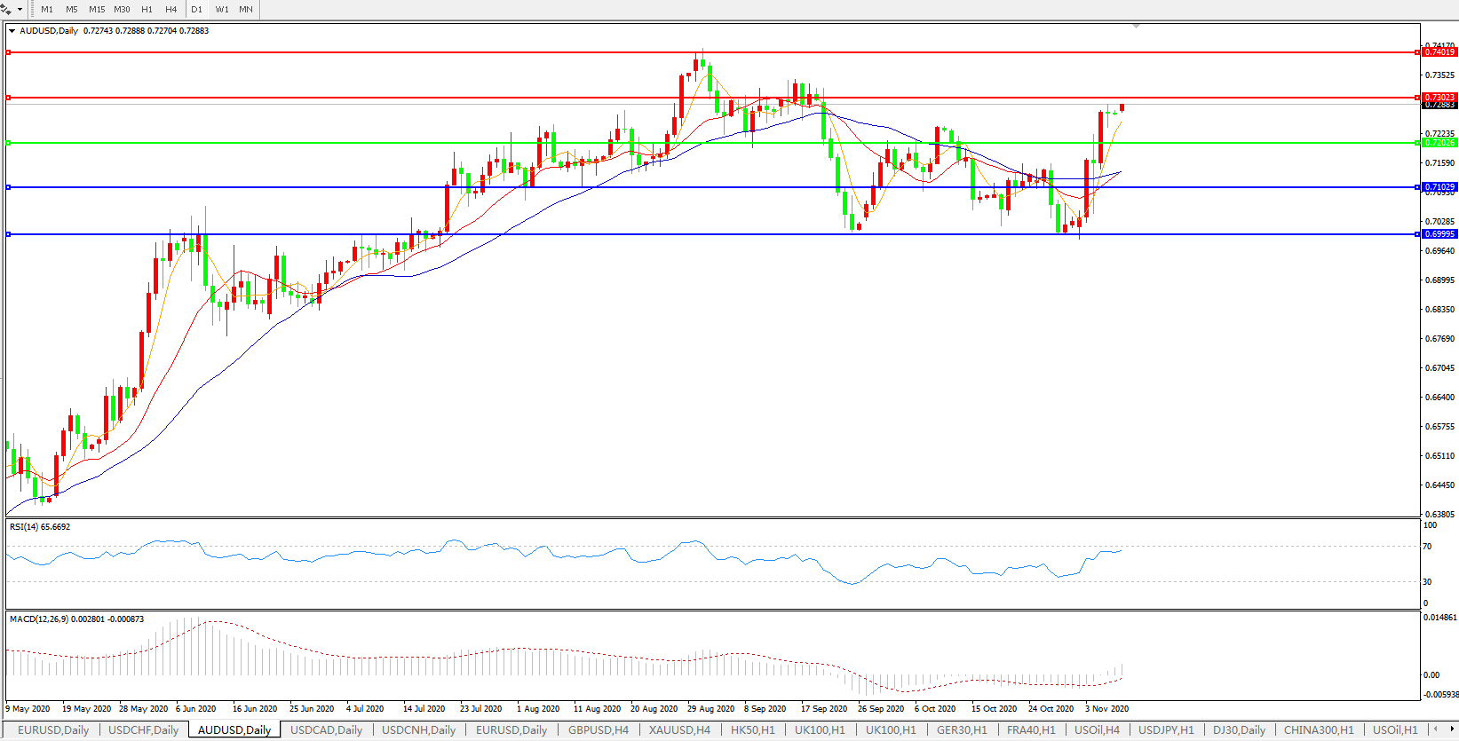 交易策略:0.7200上方看涨,目标0.7300、0.7400