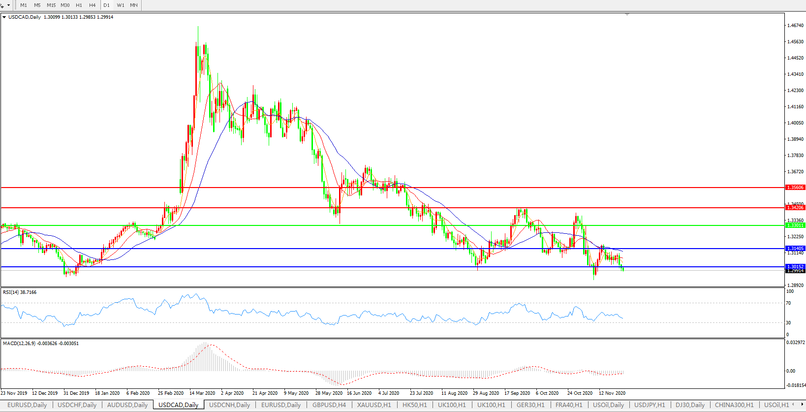 美元兑加元USDCAD    日线图: