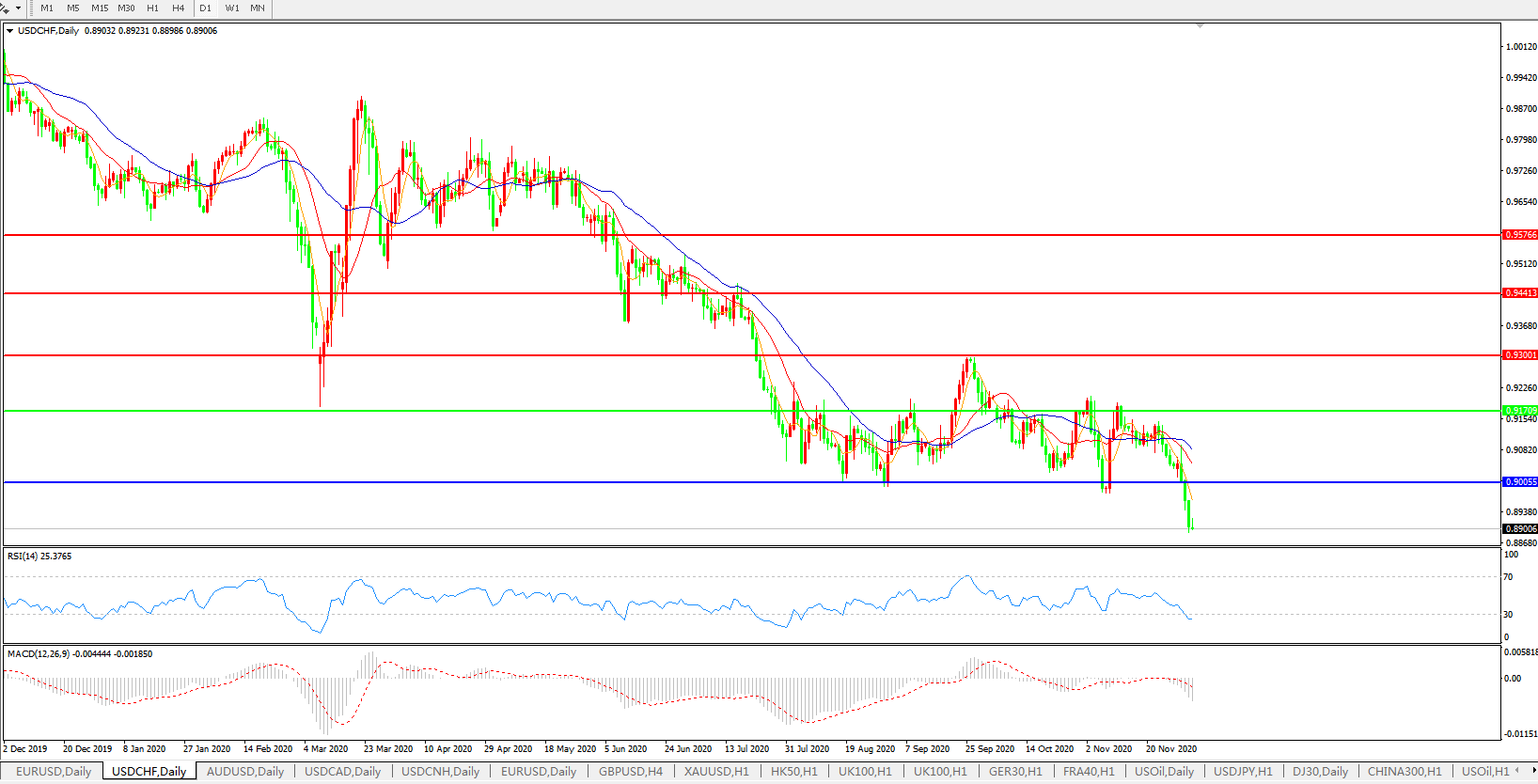 美元兑瑞郎USDCHF 日线图: