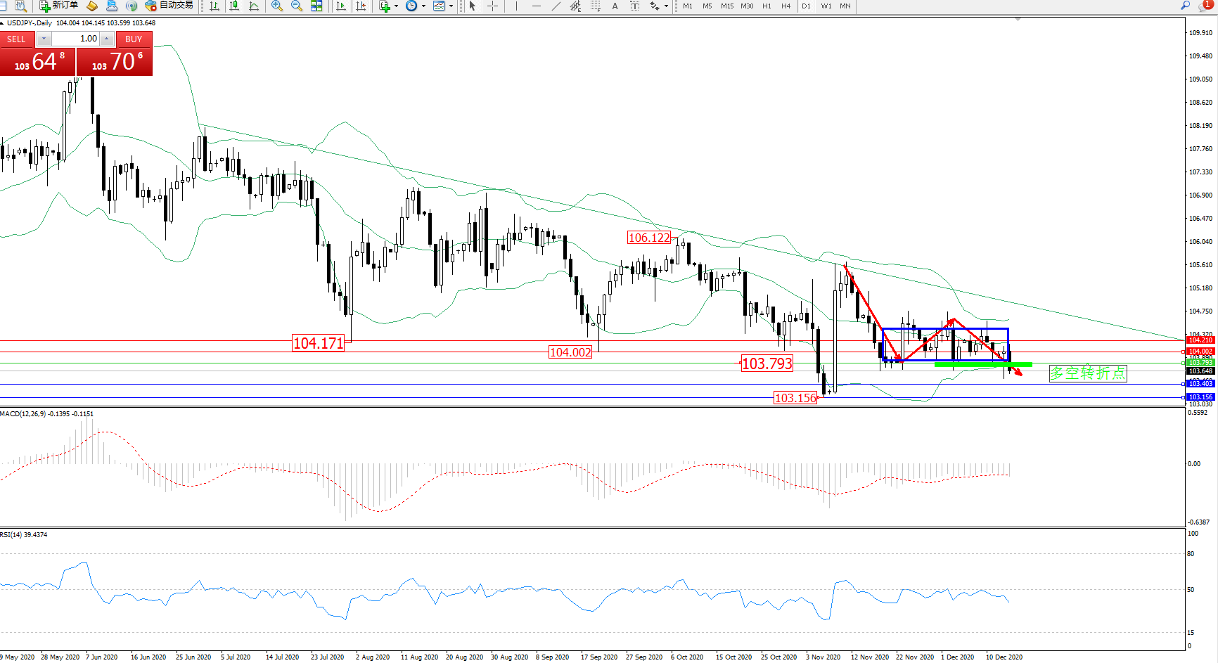 交易策略:103.793下方看跌,目标103.403、103.156