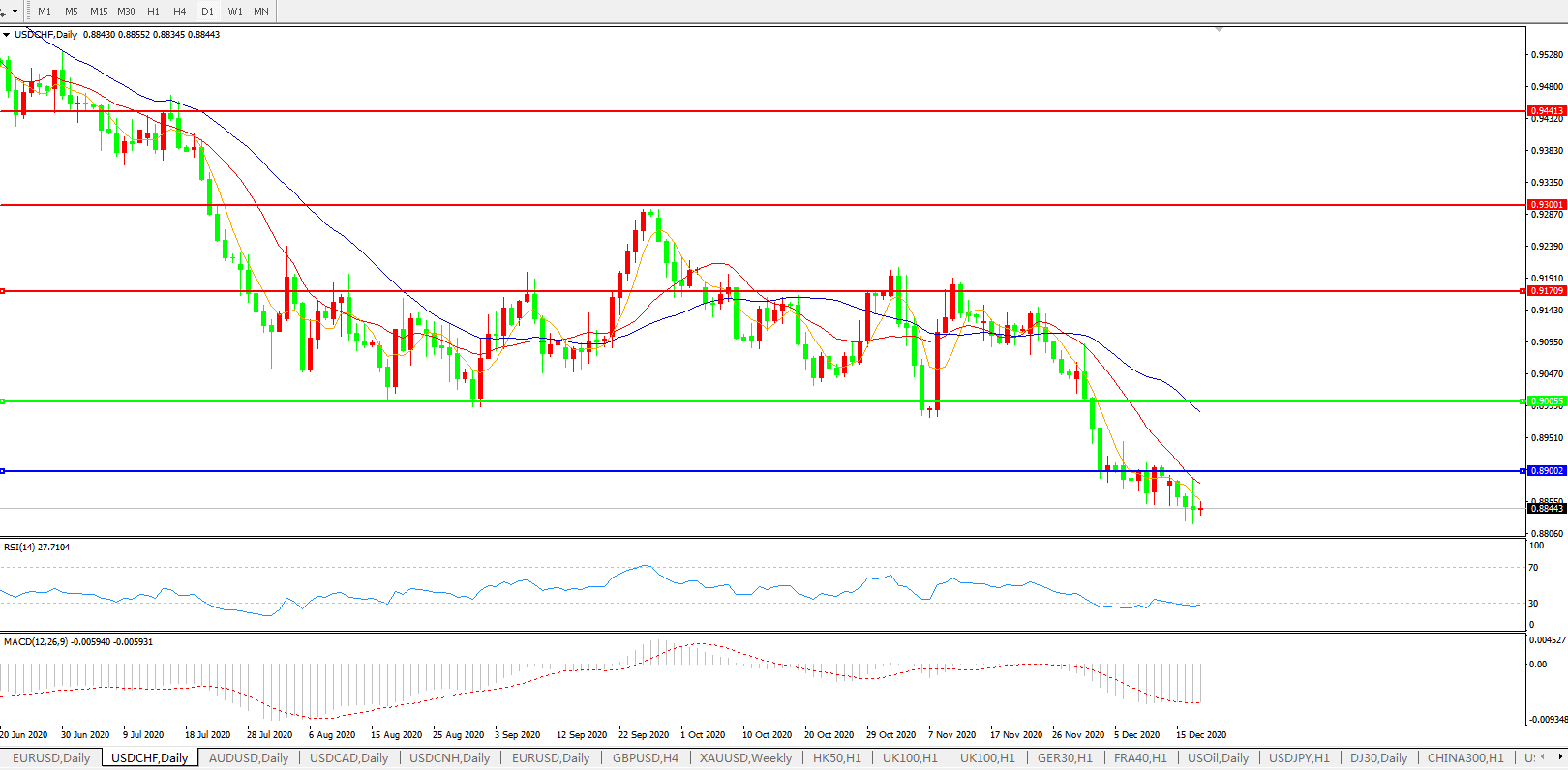 美元兑瑞郎USDCHF 日线图: