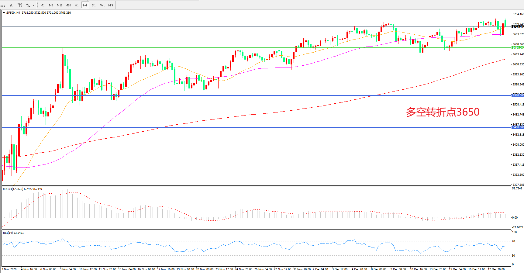 多空转折点:3650.00