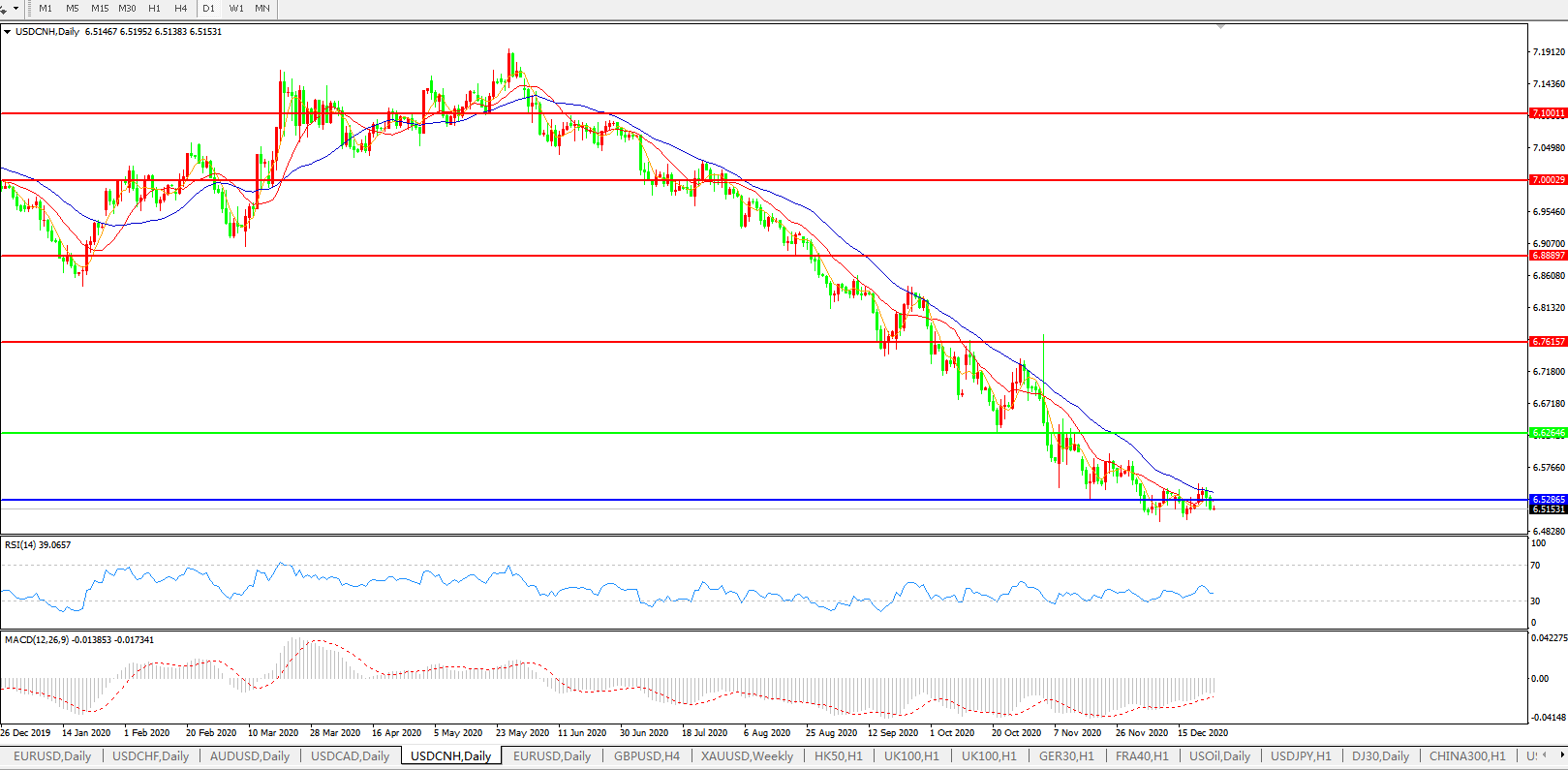 交易策略: 在6.6265之下,看跌,目标价位为6.5286,然后为6.3500。