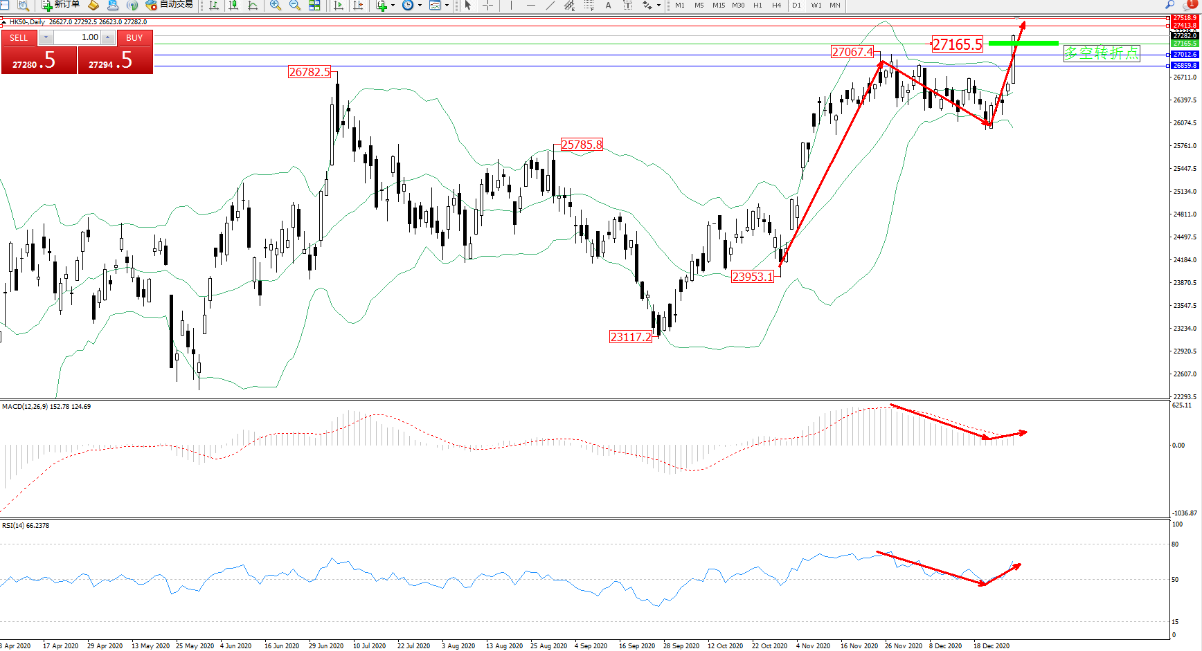 恒指HK50 ——日K线图显示: