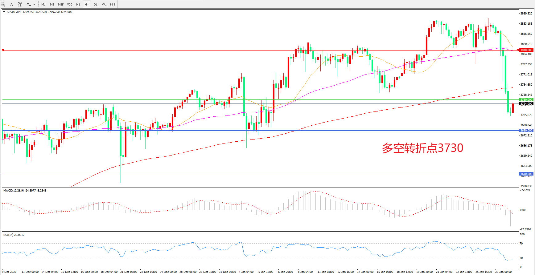 多空转折点:3730.00