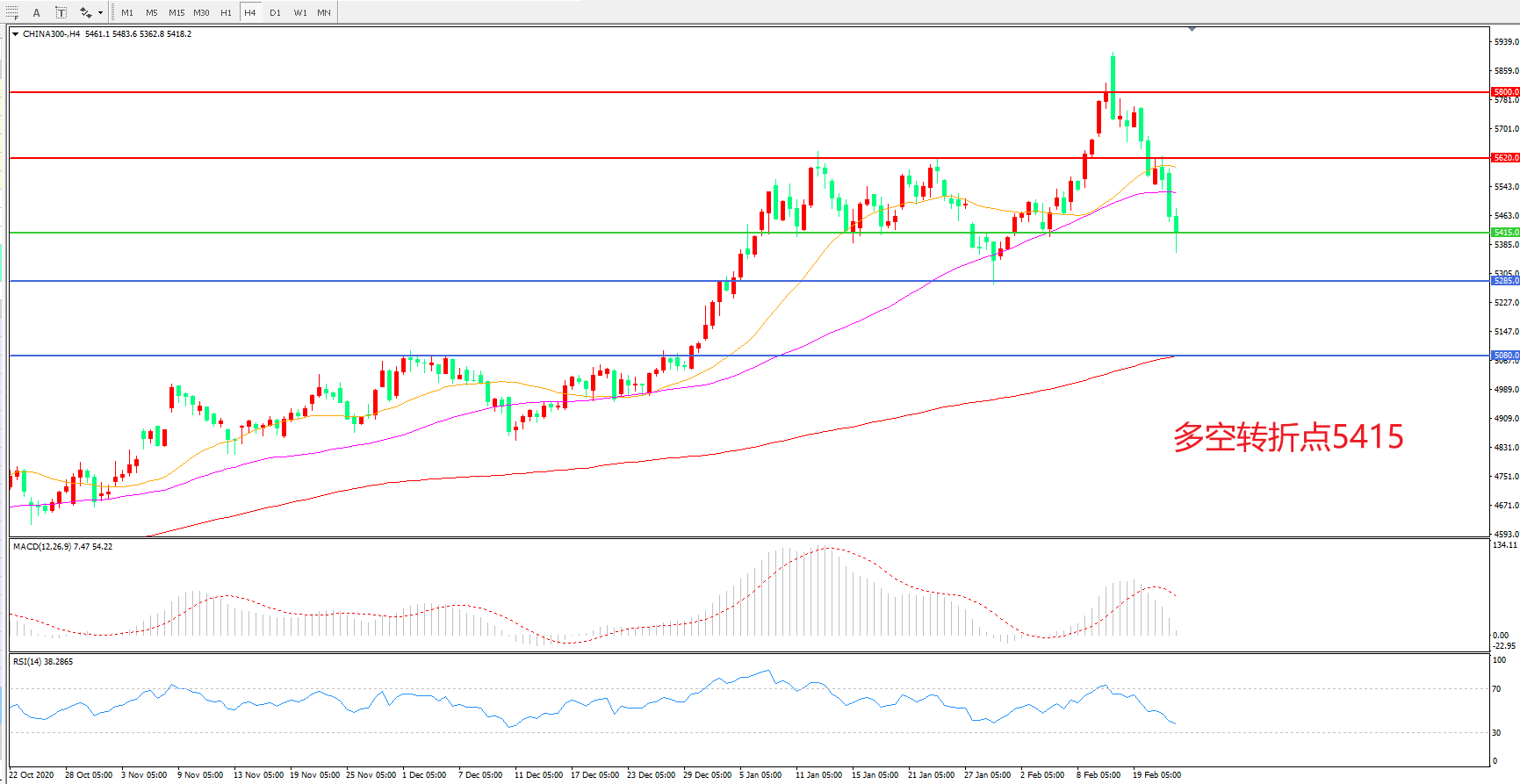 多空转折点:5415.00