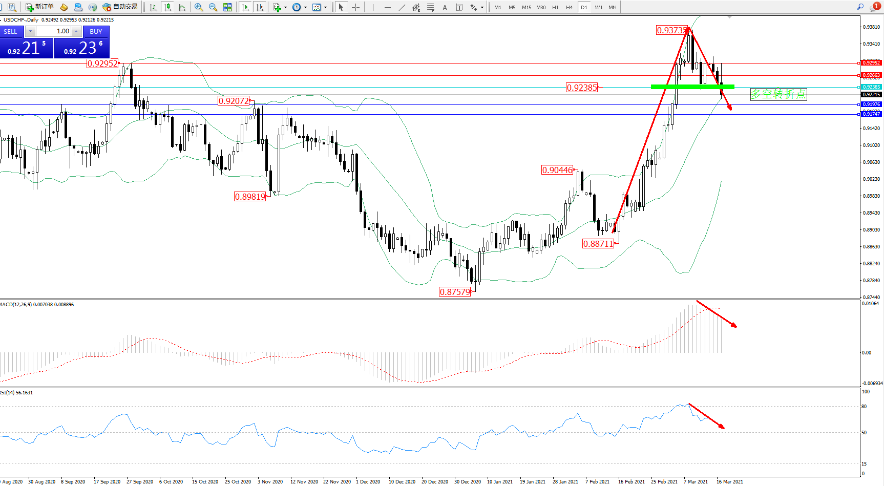美元瑞郎USDCHF——日K线图显示: