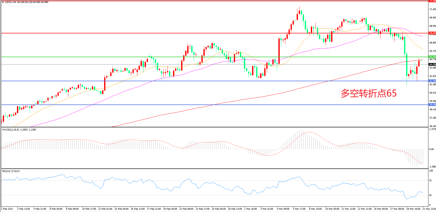 交易策略:在65.00之下看跌,目标62.00 59.00