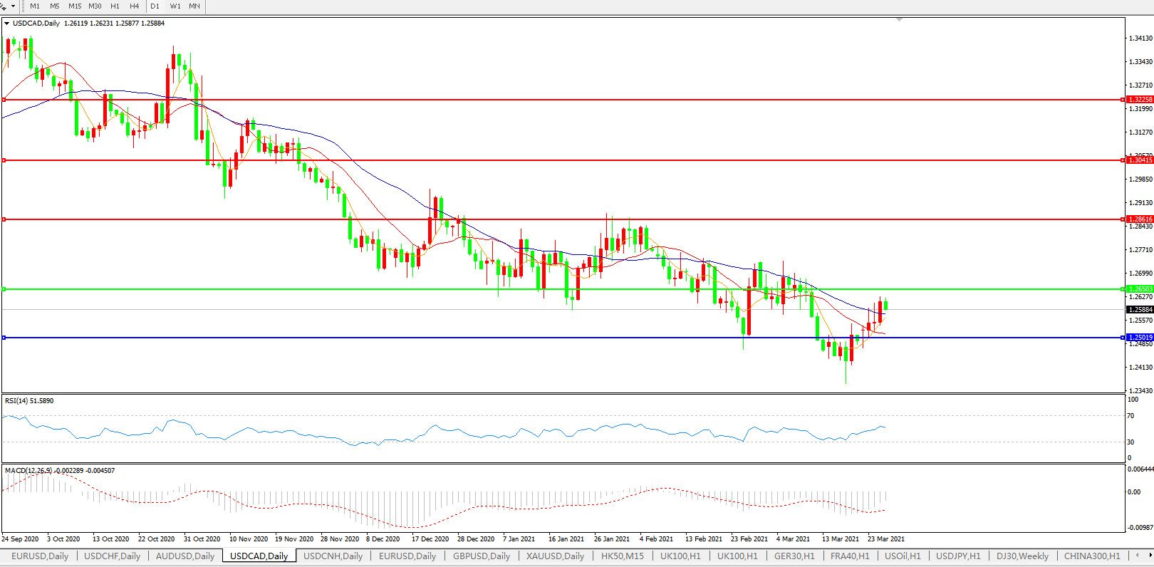 美元兑加元USDCAD    日线图: