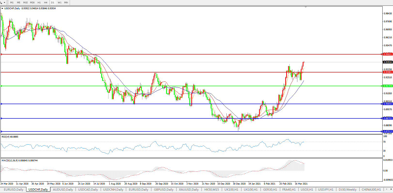 美元兑瑞郎USDCHF 日线图:
