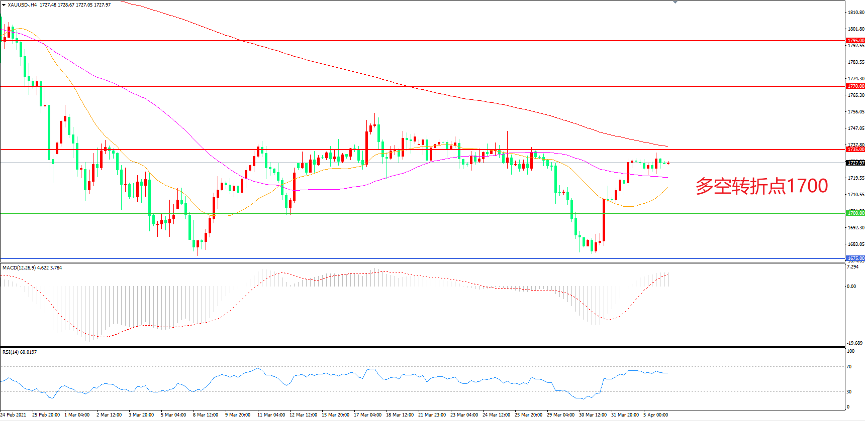 交易策略:在1700.00之上看涨,目标1735.00 1770.00