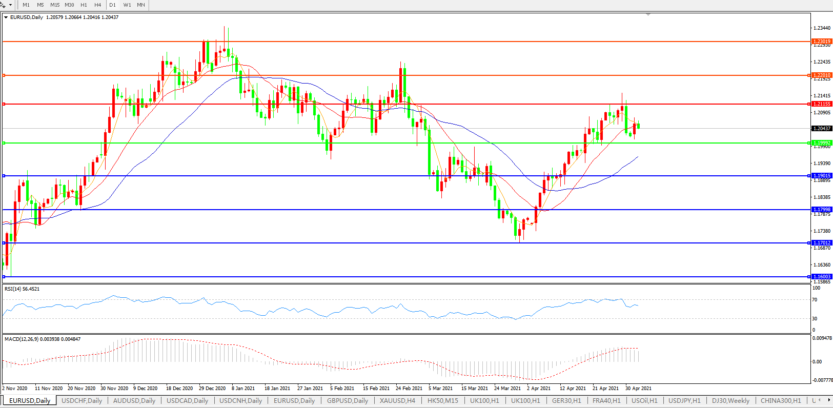 备选策略:1.2000下方看跌,目标1.1900、1.1800