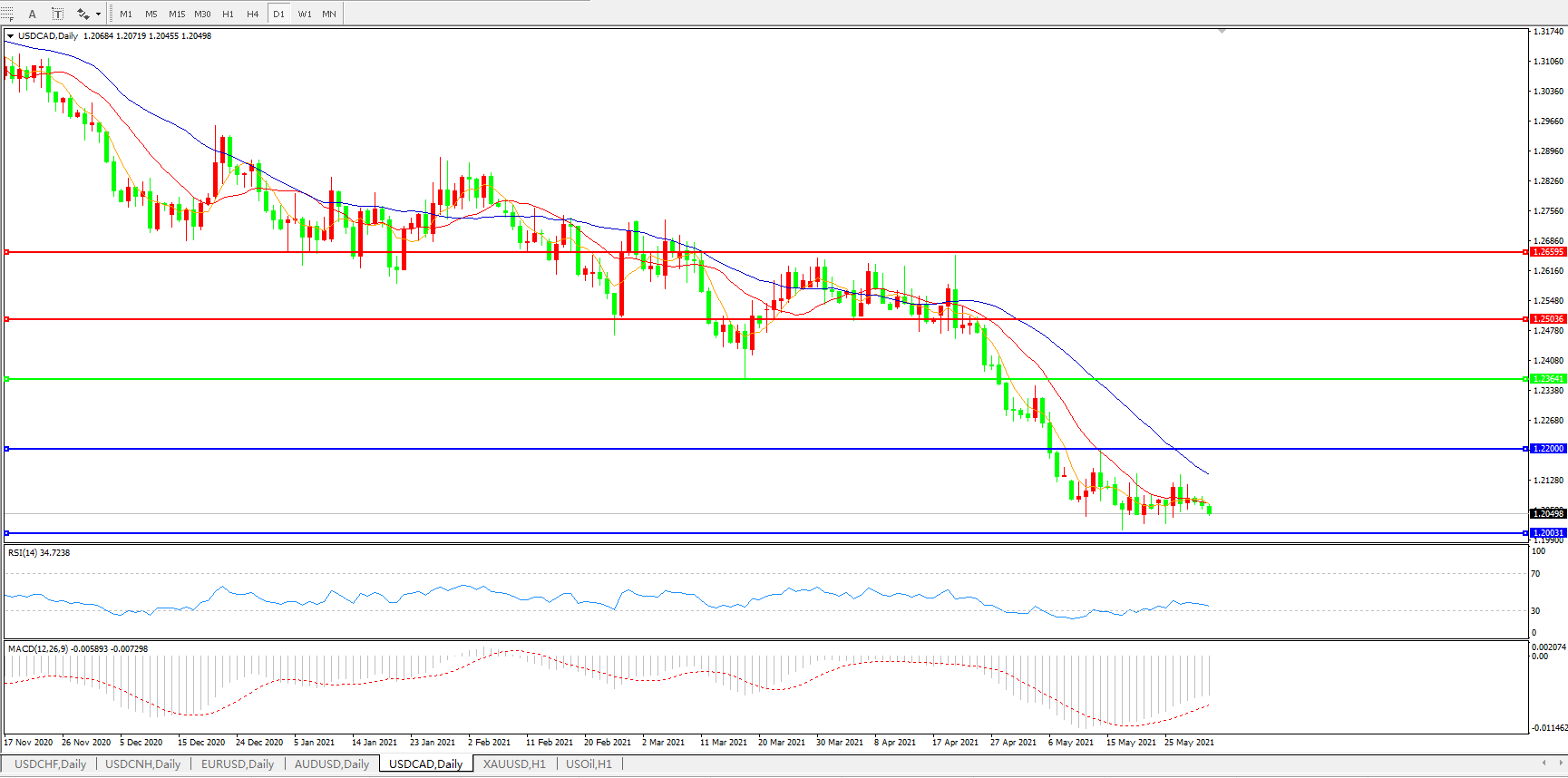 美元兑加元USDCAD 日线图: