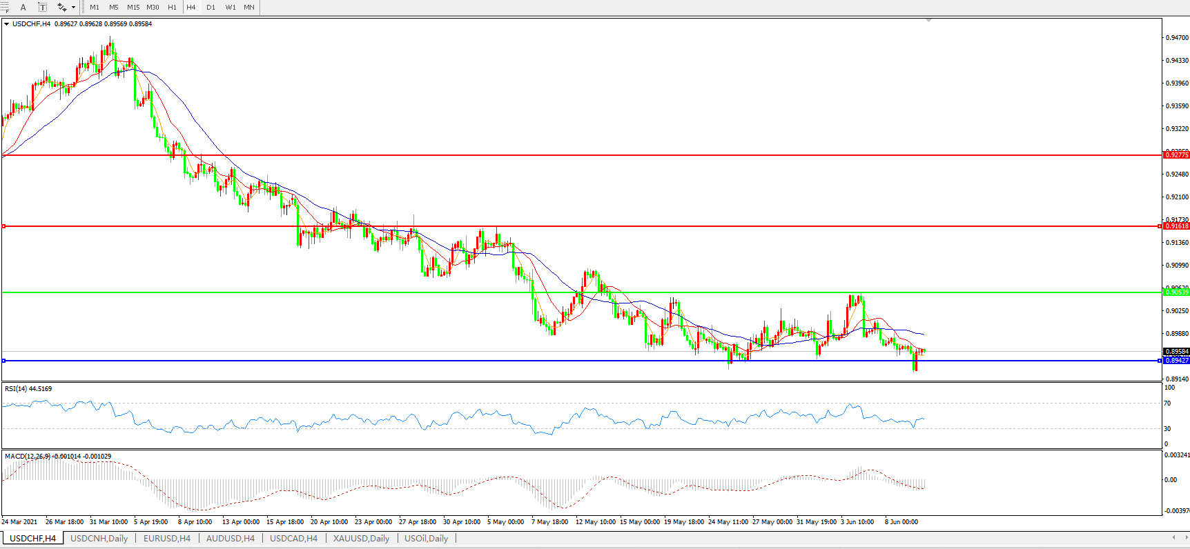 美元兑瑞郎USDCHF 4小时图: