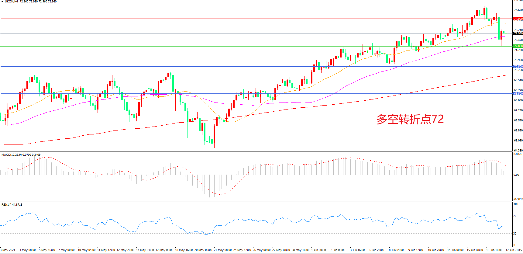 交易策略:在72.00之上看涨,目标74.00 77.00