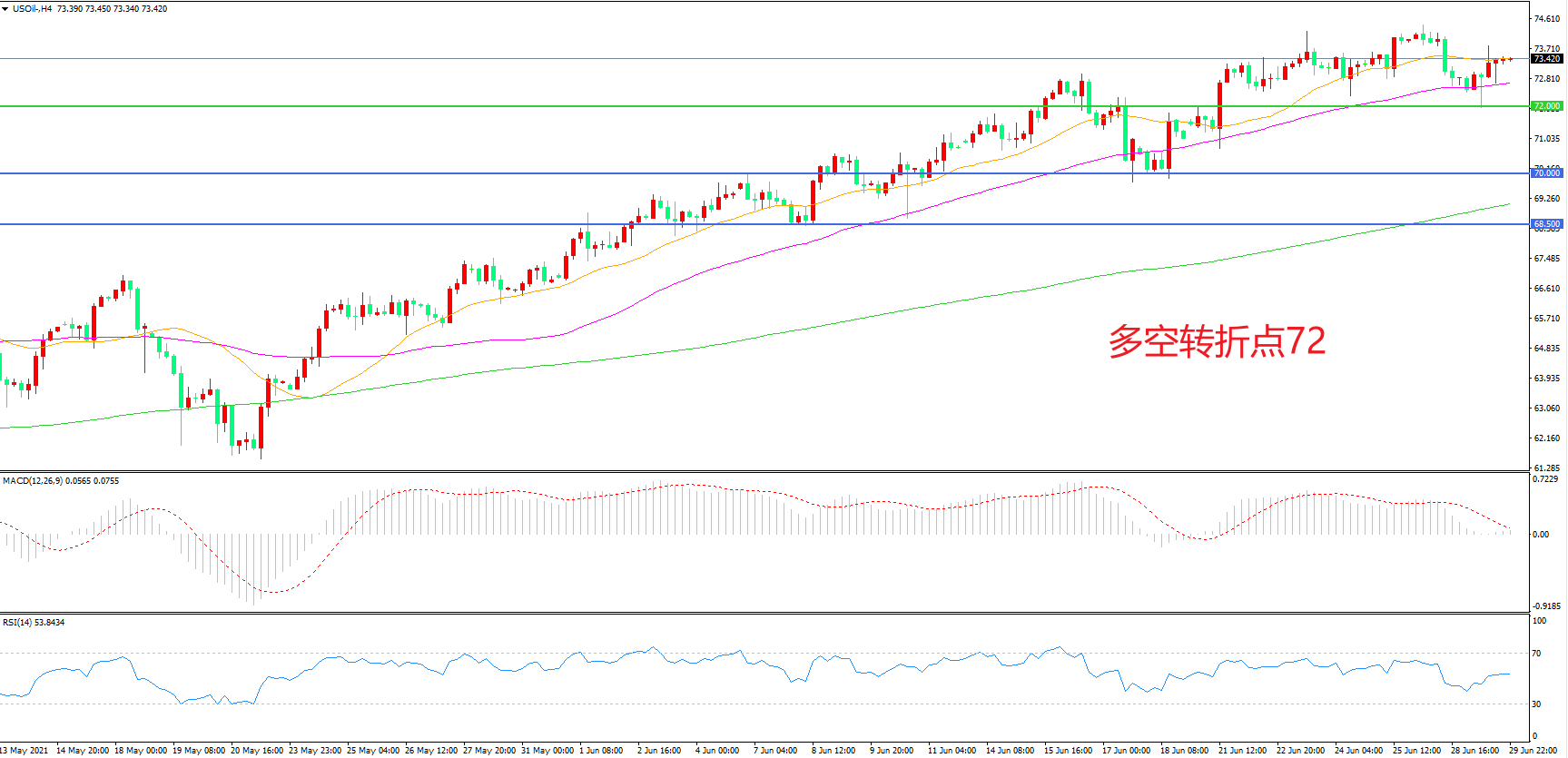 多空转折点:72.00