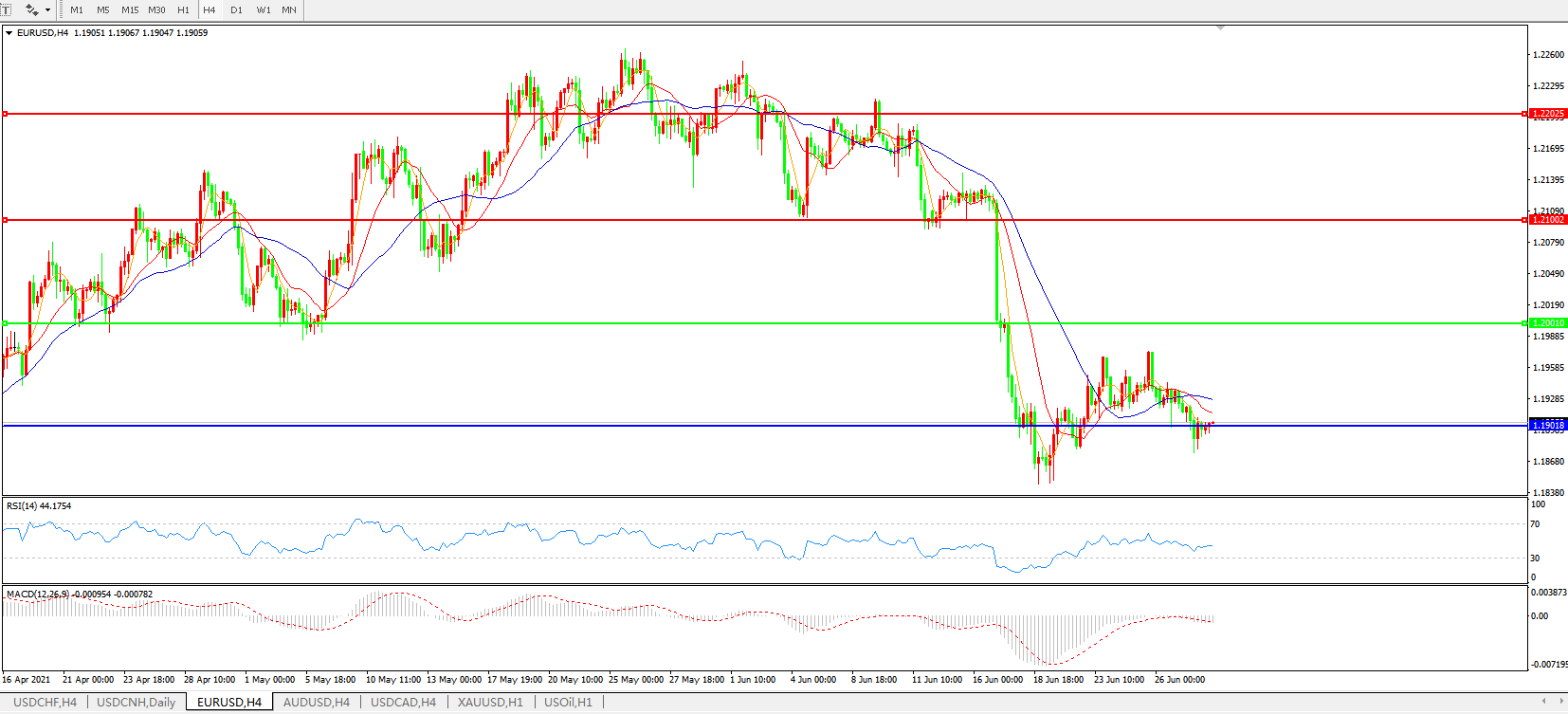 欧元兑美元EURUSD 4小时图:
