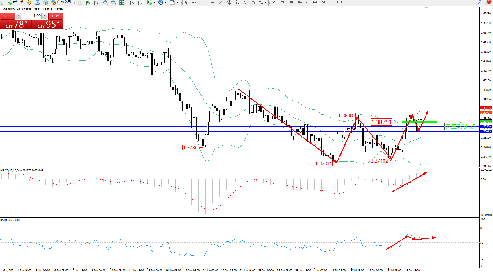 交易策略:1.38751上方看涨,目标1.39064、1.39235