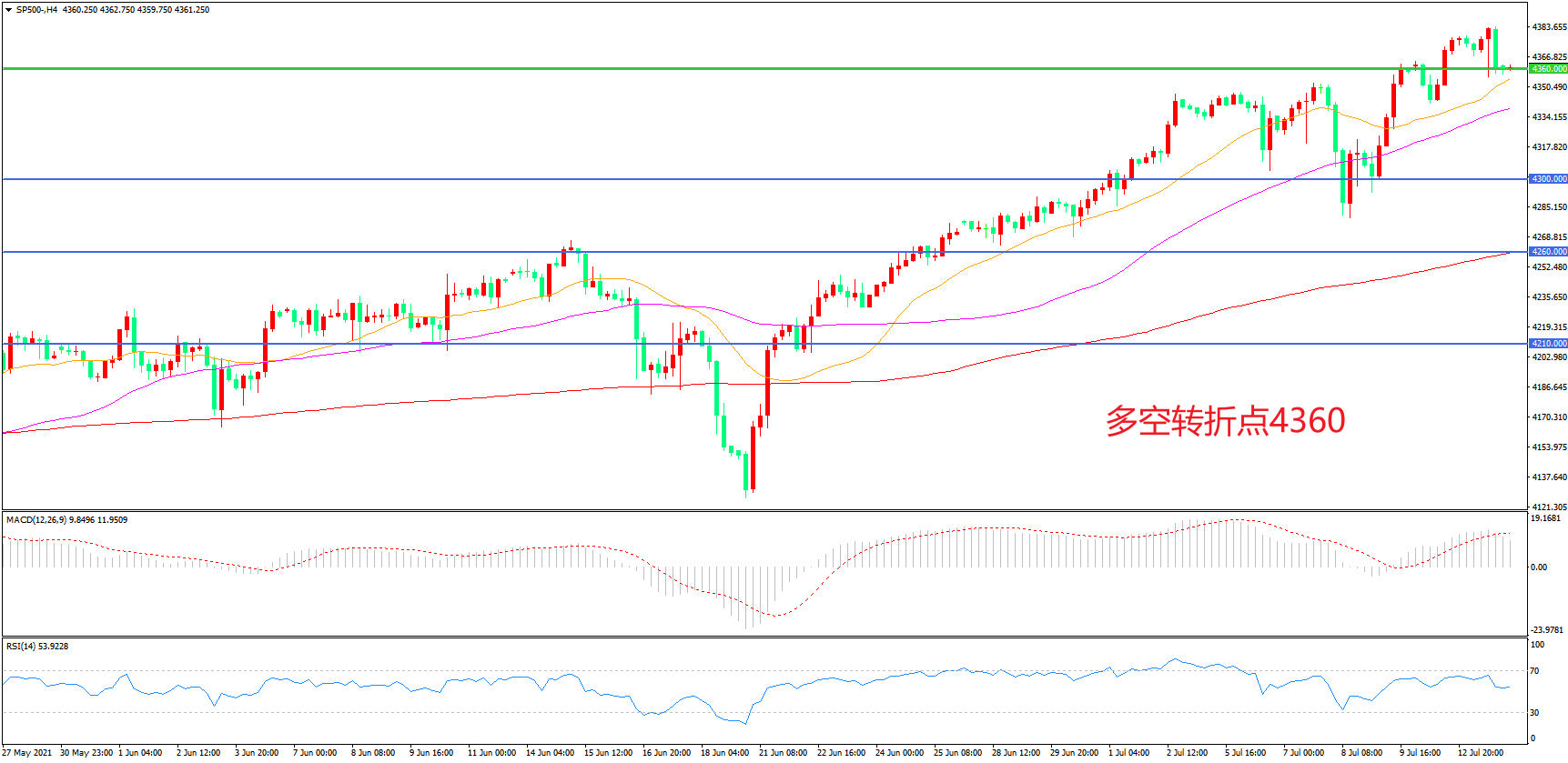 多空转折点:4360.00