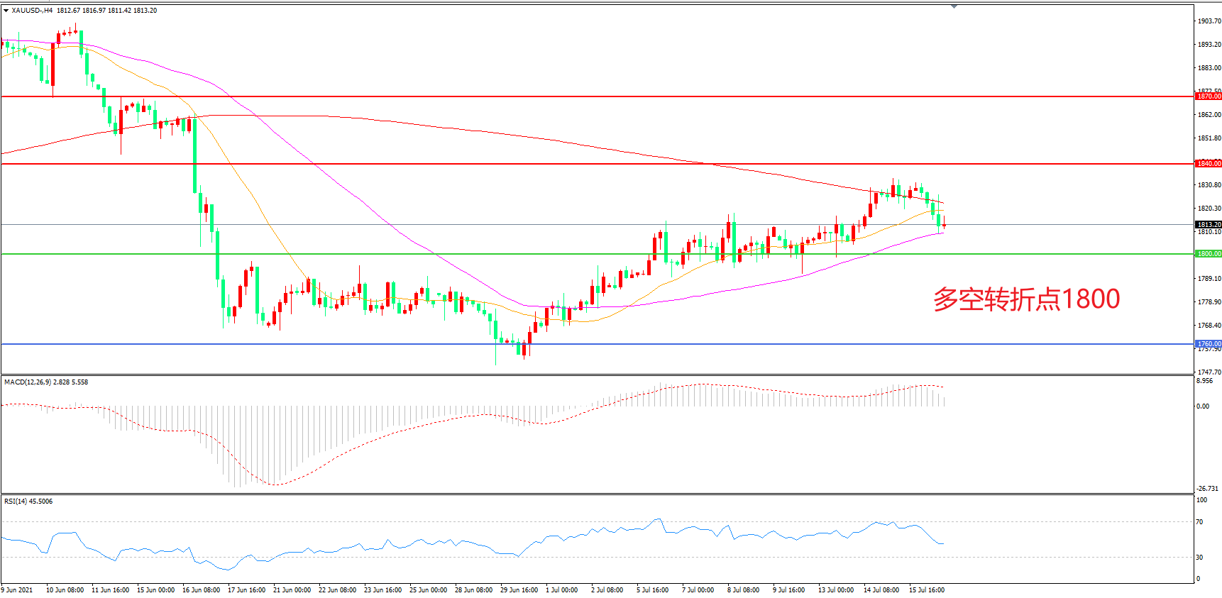 交易策略:  在1800.00之上看涨,目标1840.00        1870.00