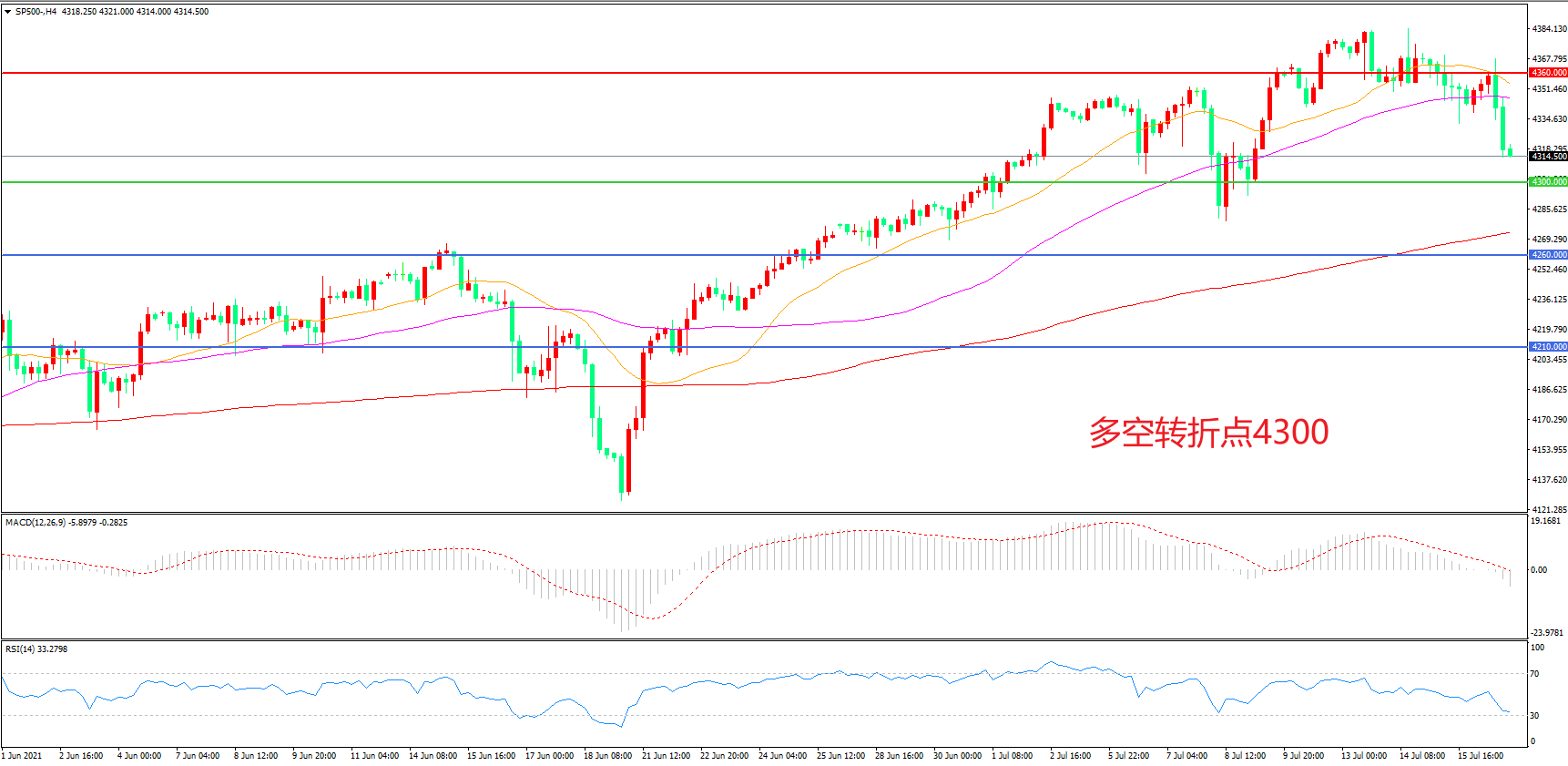 上周五(7月16日),7月密歇根大学消费者信心指数意外不升反降,创五个月新低,令市场担心当前的经济扩张可能无法持续,标普500大幅下行,收报4314.50点。在进入财报季之际,华尔街对大银行和整个金融业寄予厚望,预计它们将从经济复苏中获利。但到目前为止,大多数公布财报的大银行在发布业绩后都出现了股价下跌,在盲目乐观后,市场对第一季度飙升后的增长放缓感到失望。