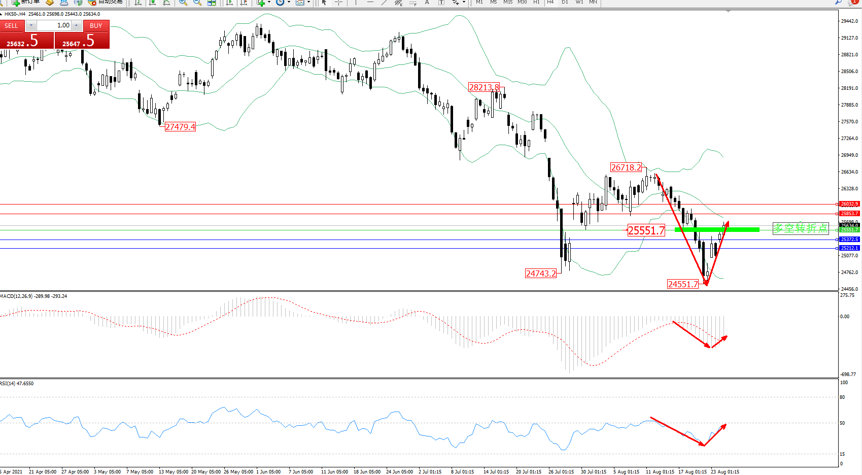 恒指HK50 ——4小时K线图显示: