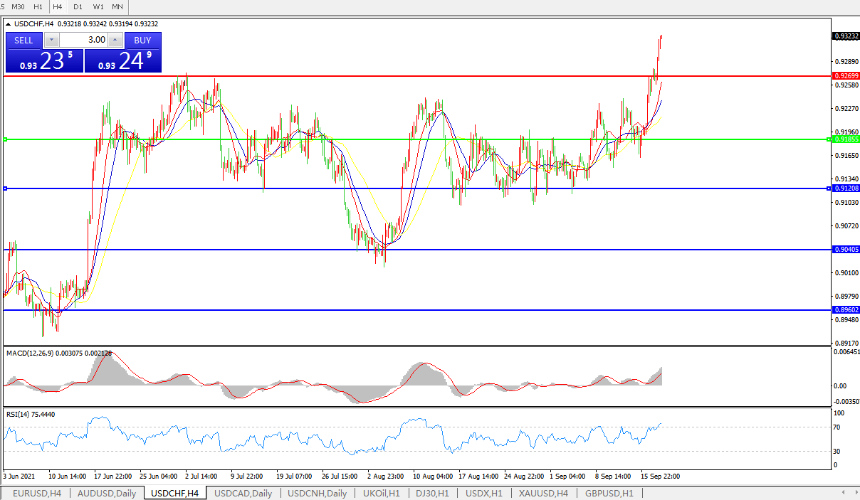 缩减购债预期升温,美元兑瑞郎持续拉升
