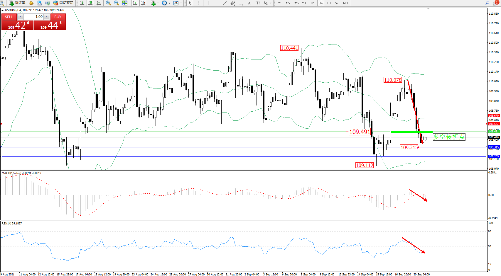 交易策略:109.491下方看跌,目标109.315109.209