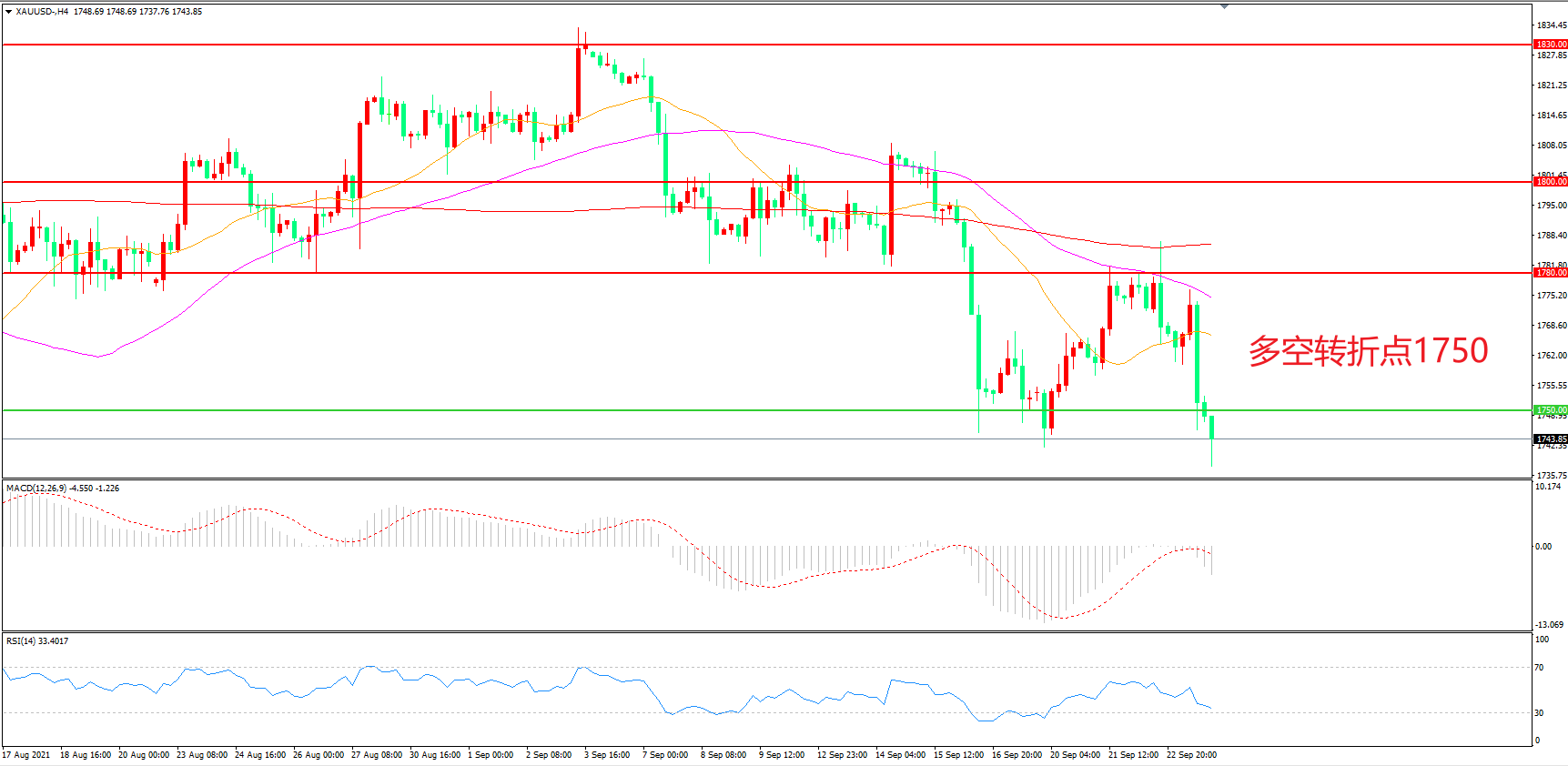 交易策略:在1750.00之下看跌,目标1720.00 1700.00