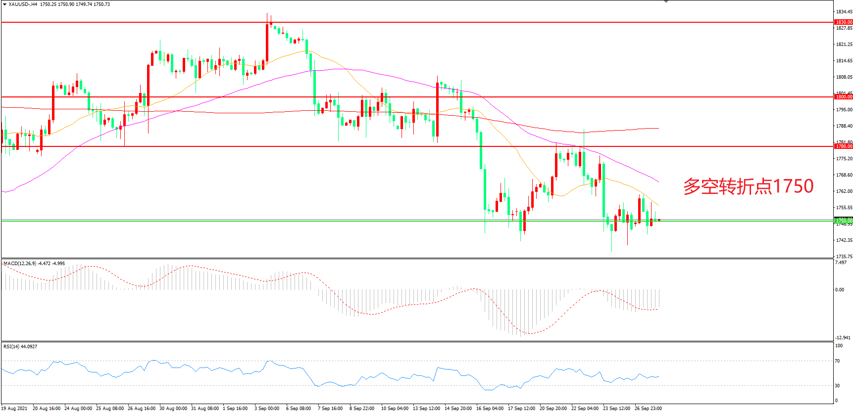 多空转折点:1750.00