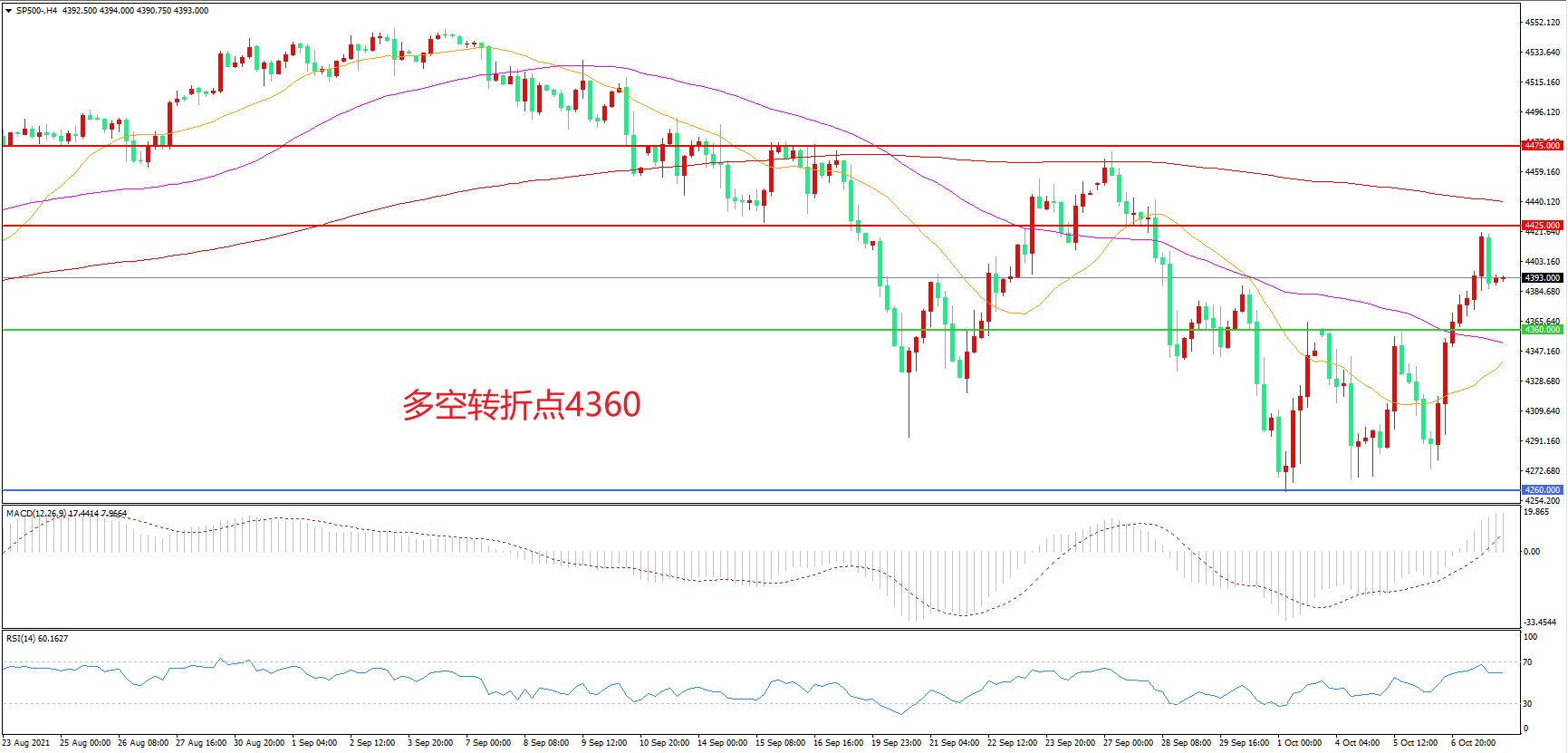 多空转折点:4360.00