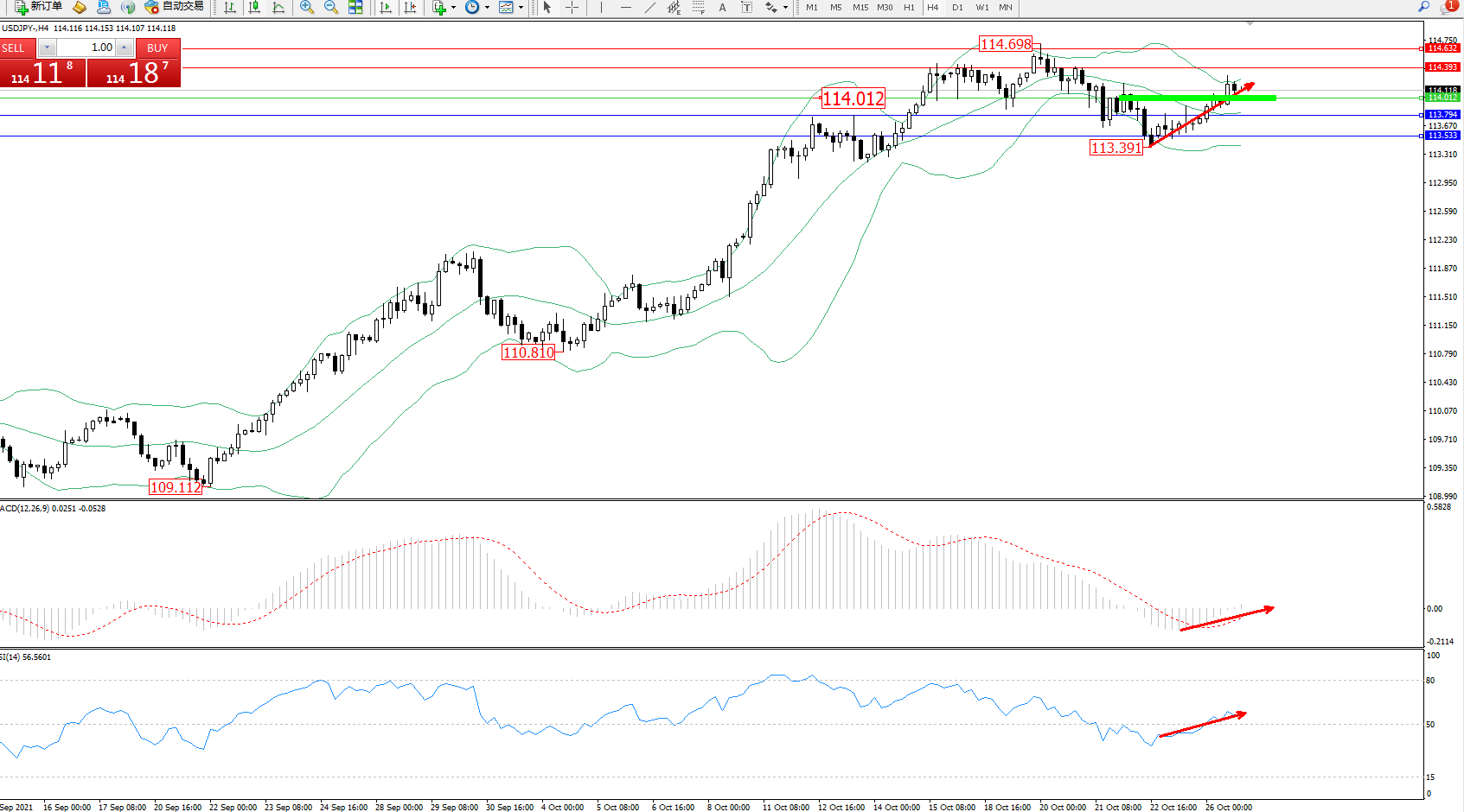 交易策略:114.012上方看涨,目标114.393、114.632