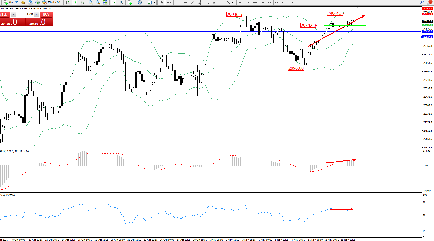 交易策略:29742上方看涨,目标29946、30040