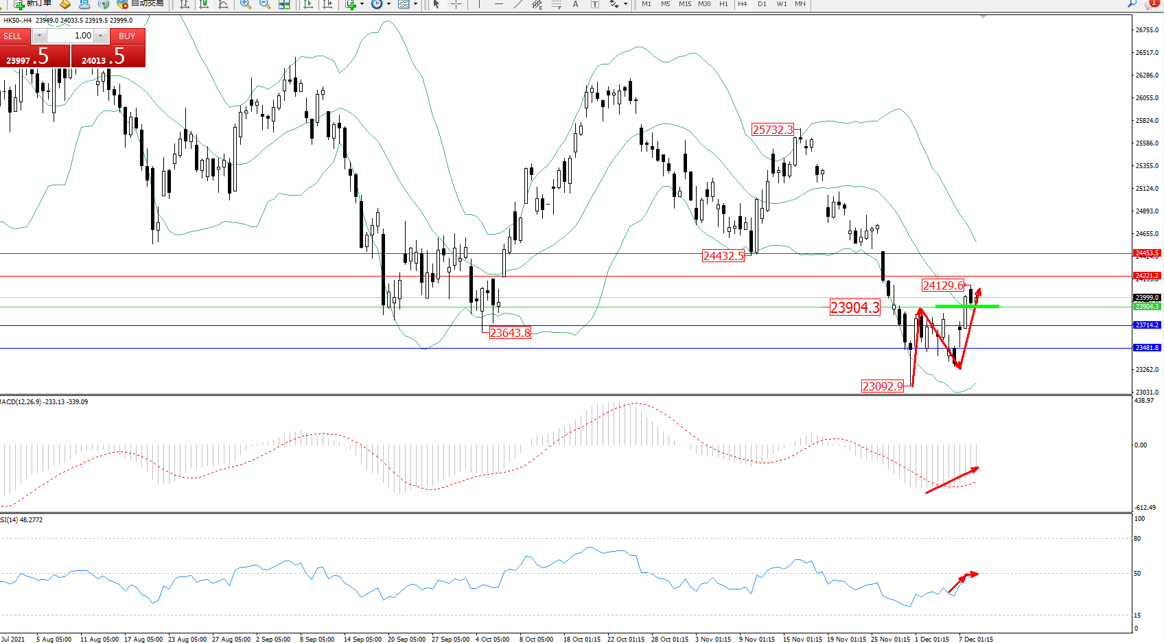 恒指HK50 ——4小时K线图显示: