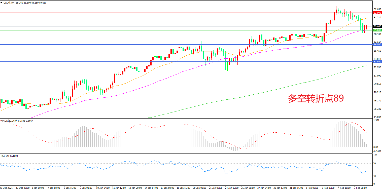 交易策略:在89.00之上看涨,目标92.00 95.00