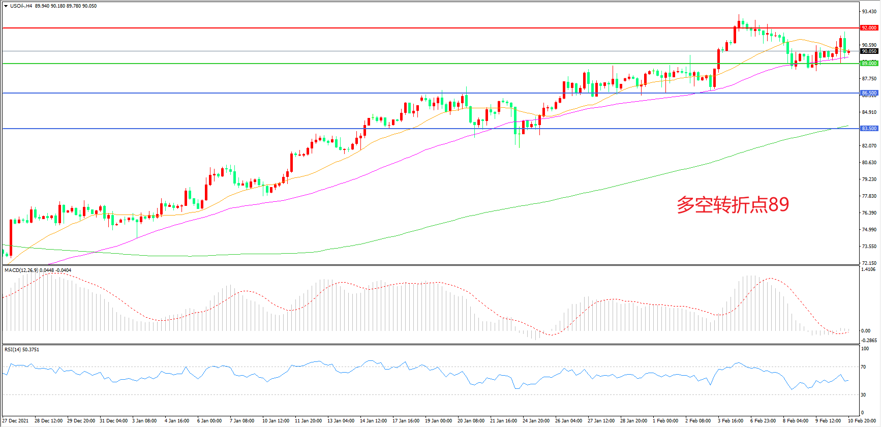 周四(2月10日),OPEC公布月度原油市场报告,将2022年对未来原油需求预期上调10万桶/日,此外,OPEC的报告也显示,该组织1月的石油产量未能达到承诺的产量,美国WTI原油延续区间震荡,收报90.02美元/桶。目前伊核谈判、地缘因素、通胀与美联储加息进展错综复杂,油价延续震荡概率较大。