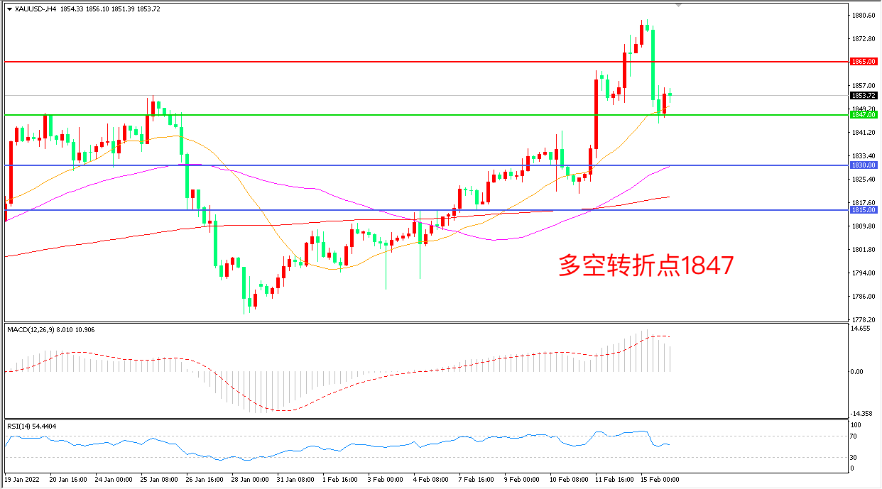 交易策略:在1847.00之上看涨,目标1865.00       1885.00