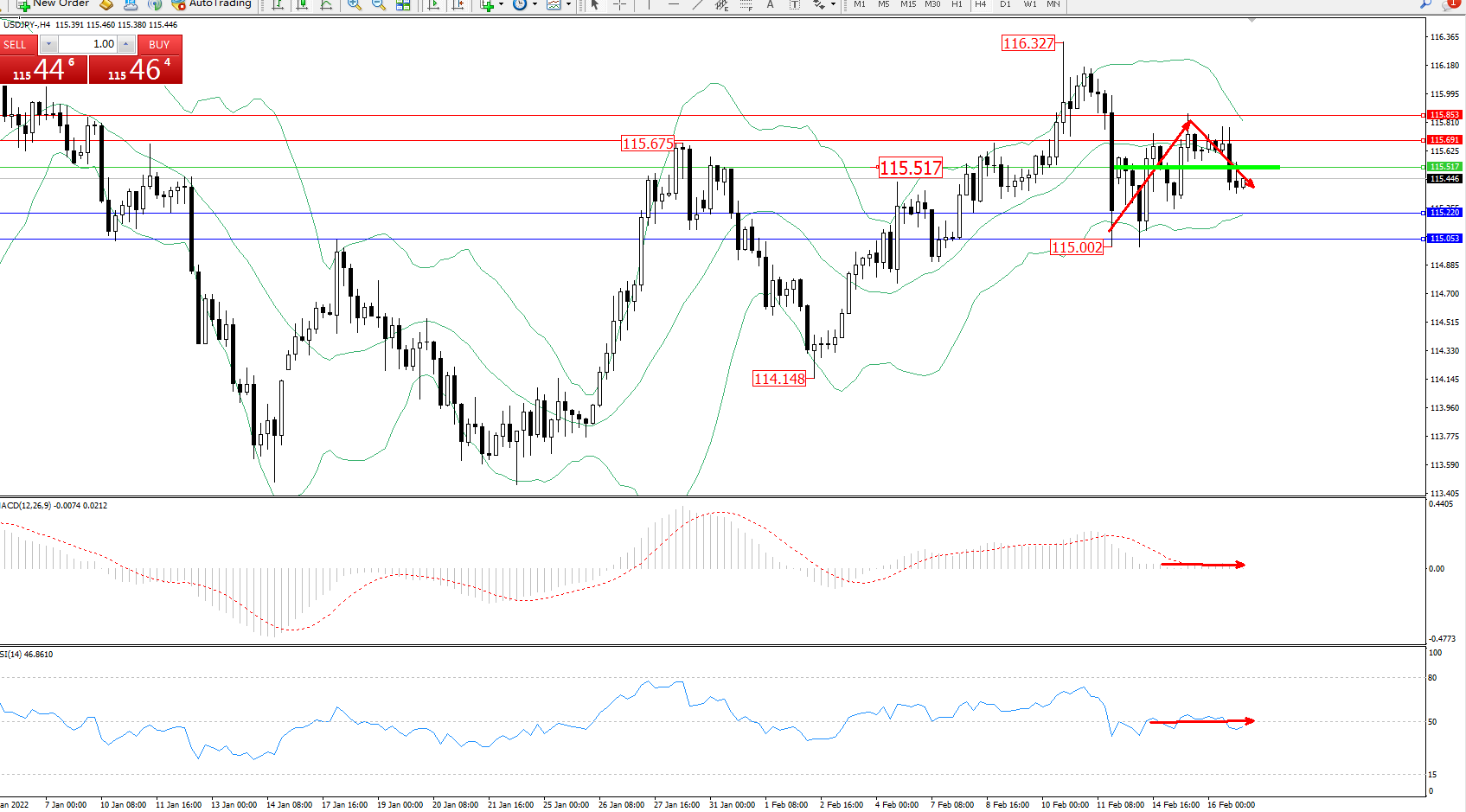 交易策略:115.517下方看跌,目标115.220115.053