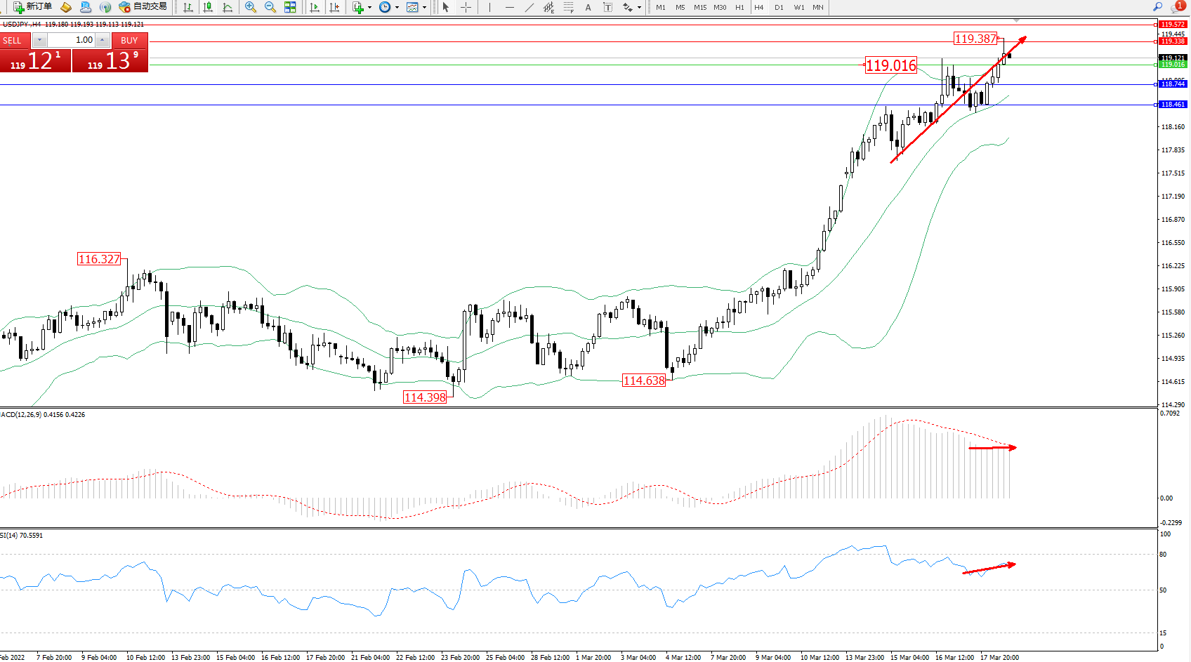 压制位:119.338、119.572