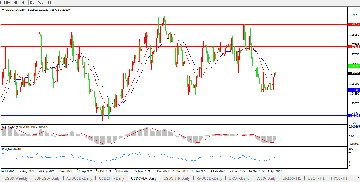 美元兑加元USDCAD 日线图: