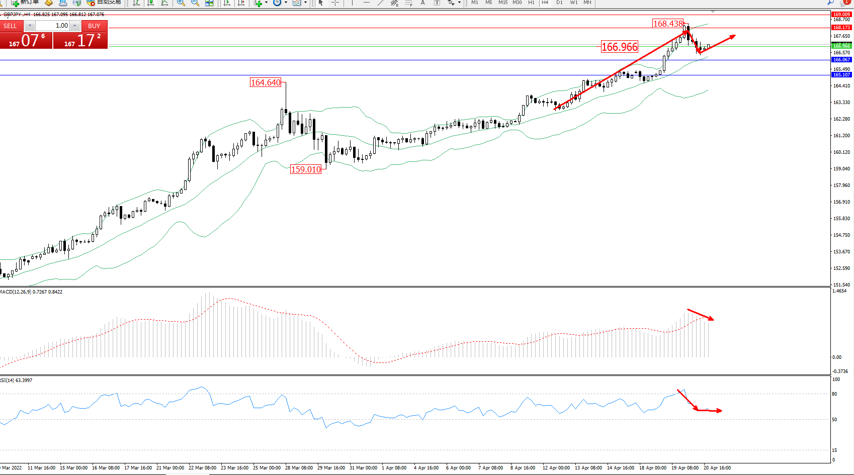 交易策略:166.966上方看涨,目标168.173、169.009
