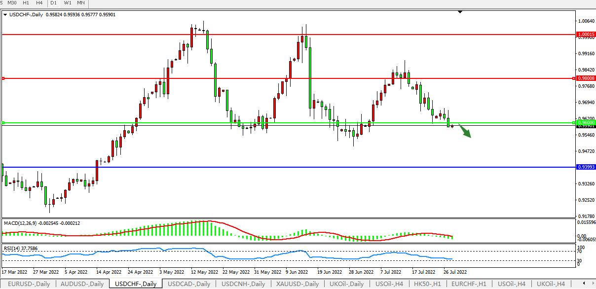 USDCHF:0.9600支撑破败