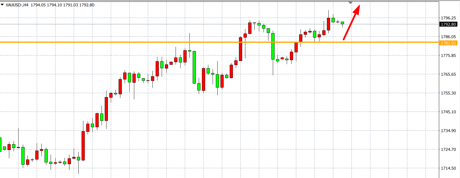 交易策略:在1782.00之上看涨,目标1800.00           1820.00