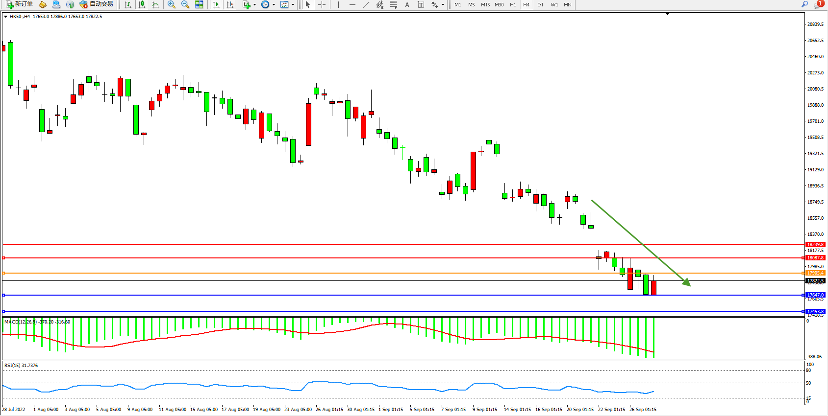 恒指HK50 4小时图