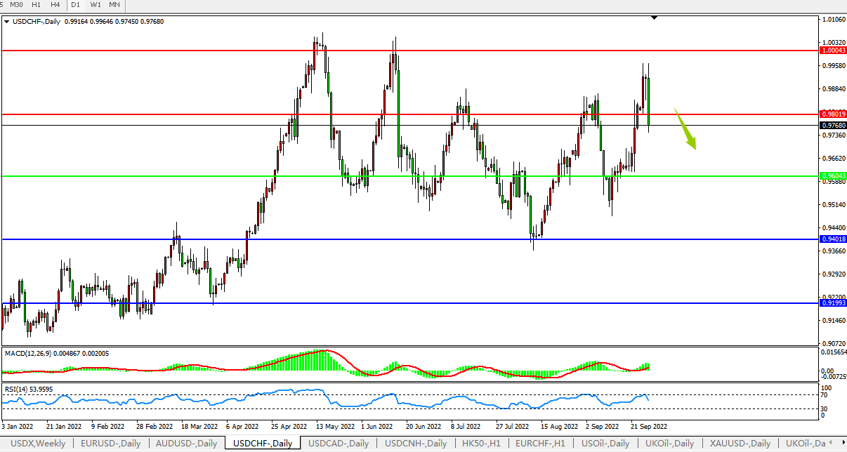 交易策略:0.9600上方看涨,目标0.9800,1.0000