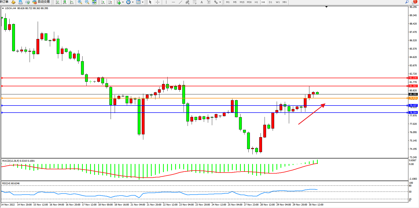 交易策略:79.939上方看涨,目标81.302、82.235