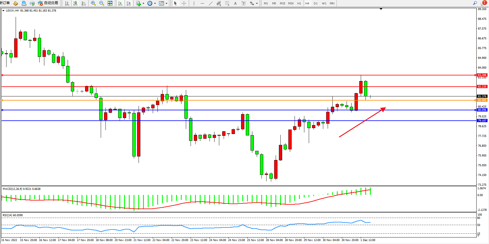 原油USOil——4小时K线图显示: