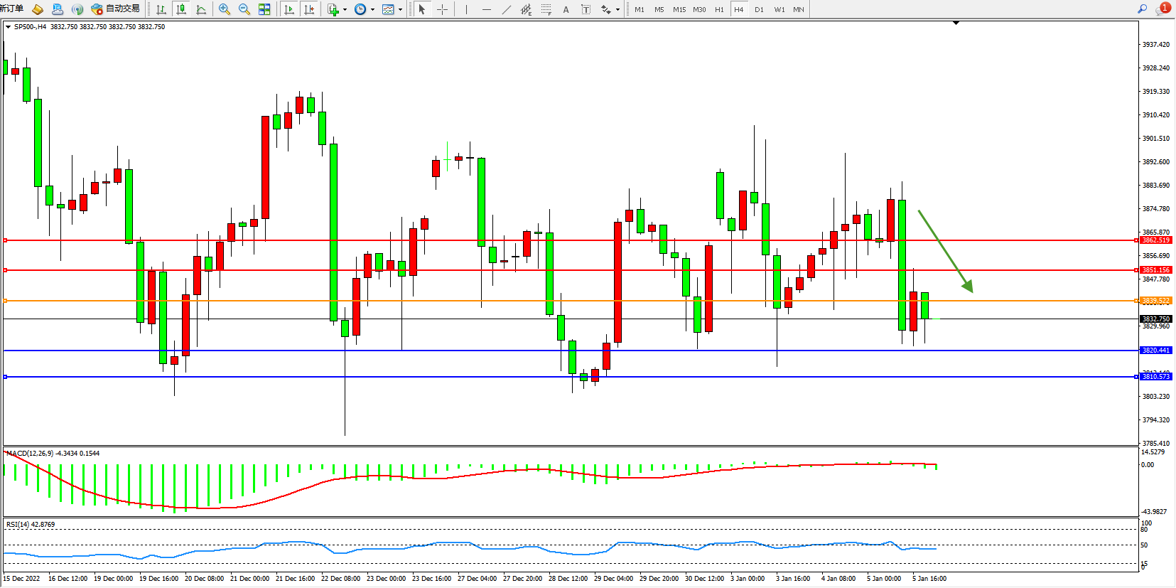 标普SP500——4小时K线图显示: